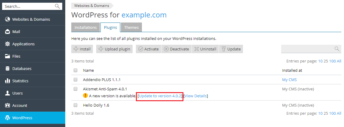 注意:WordPress工具包扩展是商业扩展。该扩展默认包含在Web Pro和Web Host Plesk版本中,但在Web Admin版本中是付费扩展。