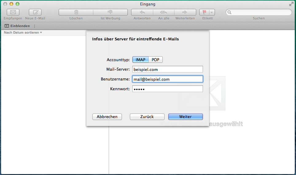 - Mailserver. Geben Sie Ihren Domainnamen ein, zum Beispiel beispiel.com.