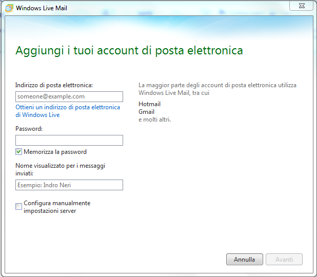 - Porta. Lasciare il valore predefinito a meno che il provider consigli di usare quello personalizzato.